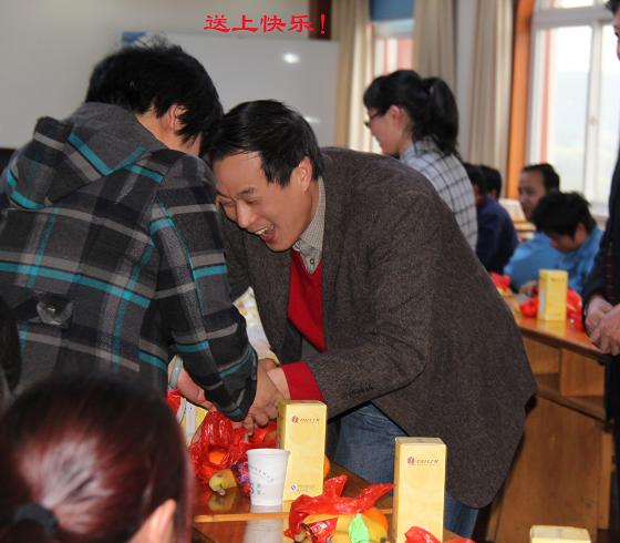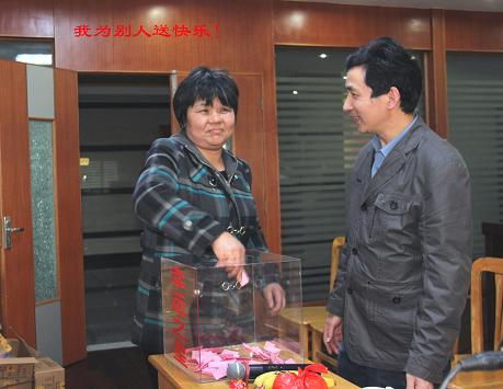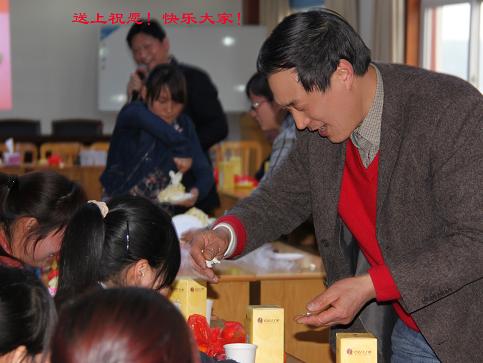 面向蛋糕,大家唱起了《祝你生日快乐》。吃蛋糕的同时,大家抢着表演,第一个表演的是生产部的董银萍,她可是上过大舞台的“演员”啊,在没伴奏的情况下唱完了越剧《心肝宝贝啊》,接着办公室的厨工王小红、金工车间的朱钦佩等在感谢公司、感谢孙总的同时各献上了一首歌曲,特别让人感动的是盘环车间员工许道友,他在表演前表示由衷地感恩公司、感恩父母,接着眼含泪花、声情并茂地唱《烛光里的妈妈》,羸得了一阵阵热烈的掌声。主持人向表演的每一位员工一一发放了奖品。