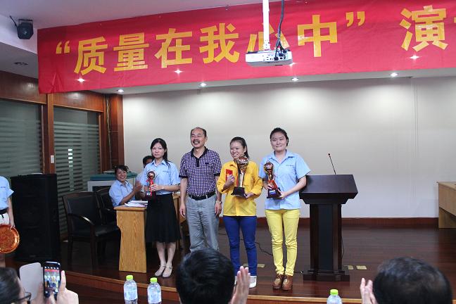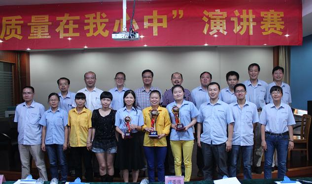 首先登场的是品管部的李华英。虽说是“万事开头难”,可打头阵的李华英自信满满,侃侃而谈,开局精彩。她紧密结合自身质检工作实际,用朴素的语言和饱满的热情摆事实、讲道理,指出密封产品的重要性,指出质量意识的重要性,希望大家要“视责任如泰山,视产品在手中,放责任于心中”,“以一流的产品质量打造一流的品牌”。她的精彩演讲,赢得了裁判和观众的热烈掌声。