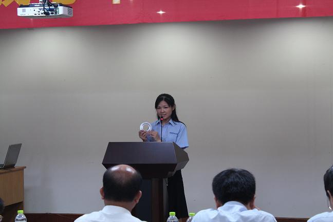 品管部郑琼从“1967年产的冻鸡爪居然还在卖”的新闻引出产品质量的重要性,希望“每一位太阳成集团tyc人都把我们的工作当作事业,始终把太阳成集团tyc的产品质量放心中,用心的做好每一个产品,用心做好自己的本职工作”。