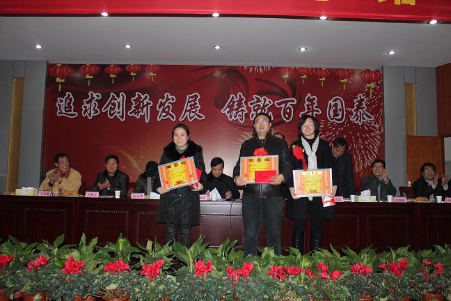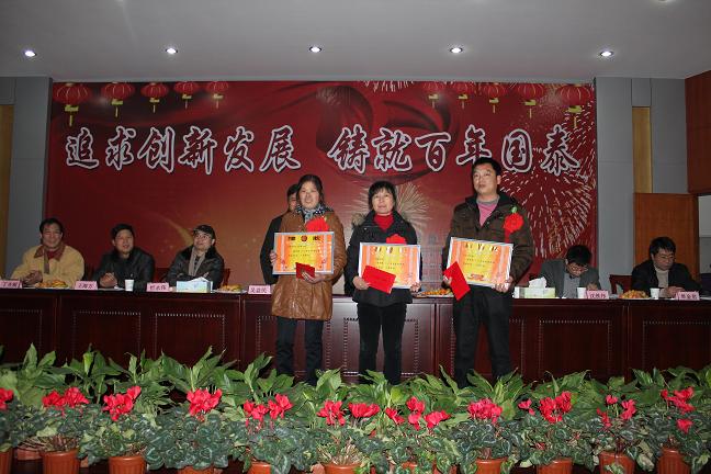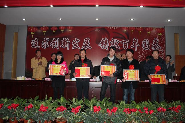 公司生产副总蒋忠灿在会上宣布了公司关于表彰2011年度先进工作集体、先进工作个人、重大创新项目奖的决定,并宣读了获奖集体和个人名单,大会对2011年度涌现的先进集体和个人进行了隆重的颁奖。随后,获奖代表发表了获奖感言,情真意切,振奋人心,全体员工对他们在工作中的突出表现和取得的荣誉报以热烈的掌声和诚挚的祝贺!