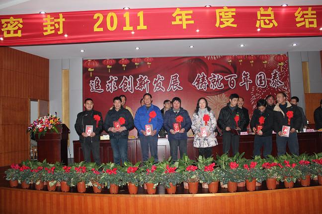 2012年1月16日,太阳成集团tyc密封2011年度总结表彰大会在公司礼堂隆重召开,总结部署公司年度工作,对2011年度公司先进集体、先进个人、重大创新项目承担小组及个人进行表彰。本次大会由公司常务副总吴益民主持,公司董事长兼总经理孙锦龙作大会总结报告,对公司2011年度的各项工作进行了全面总结,并对2012年度的各项主要工作做出了总体部署。公司高层领导及员工代表共计500多人参加了本次大会。